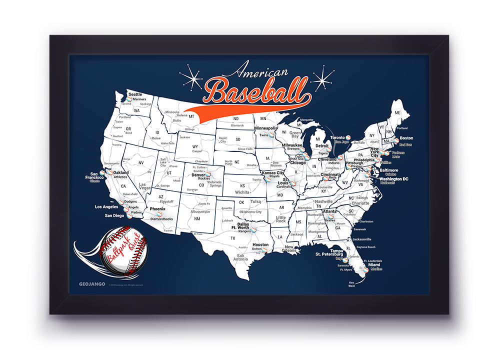 Baseball Stadium Map Framed Detroit Tigers โ GeoJango Maps