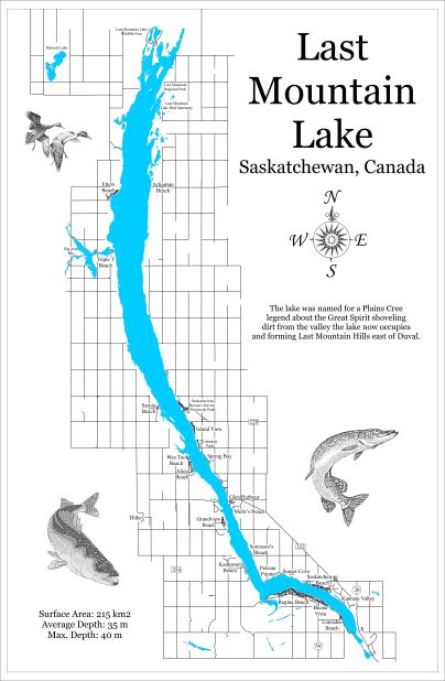 Last Mountain Lake Saskatchewan Bathymetric Map Erlenmeyer
